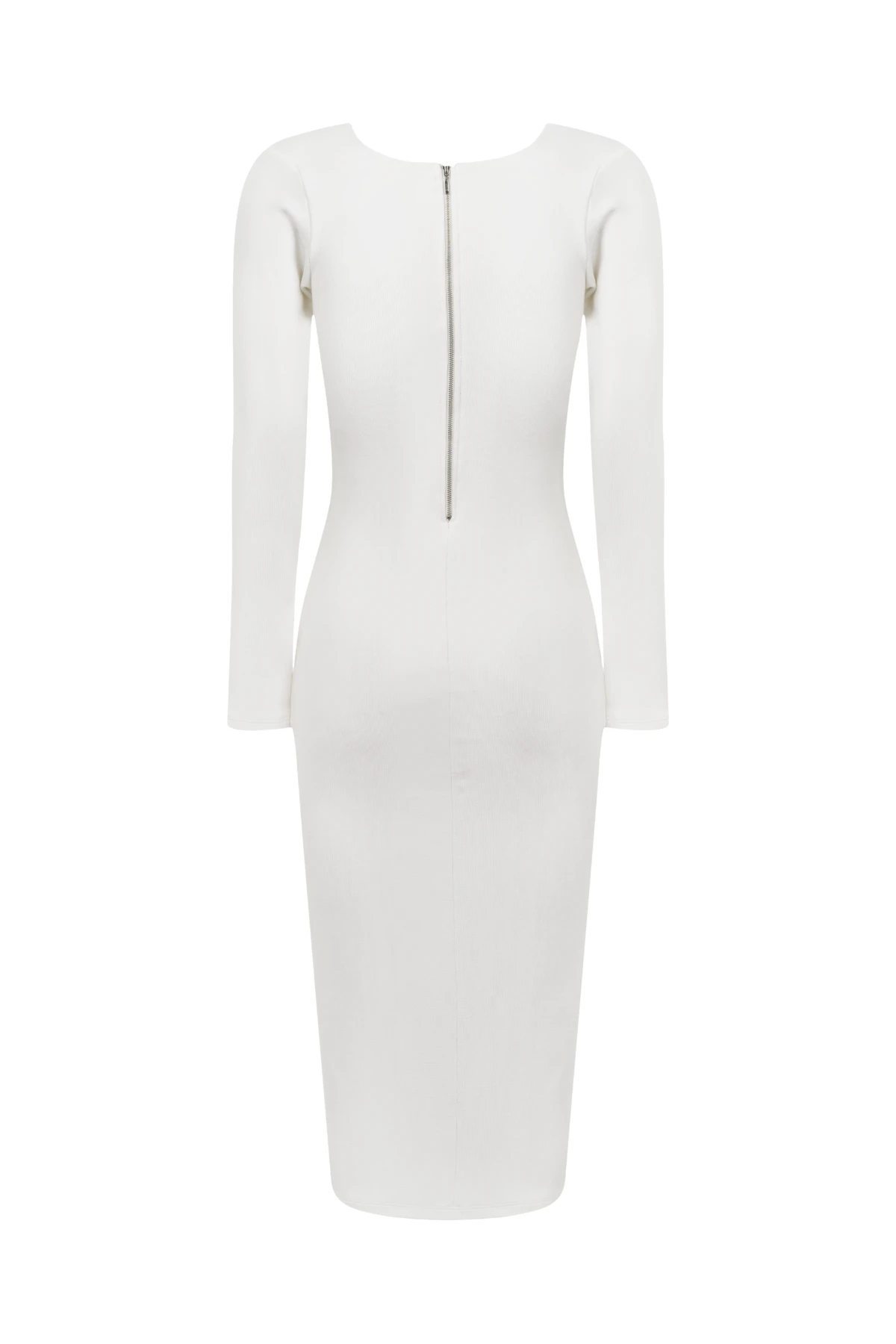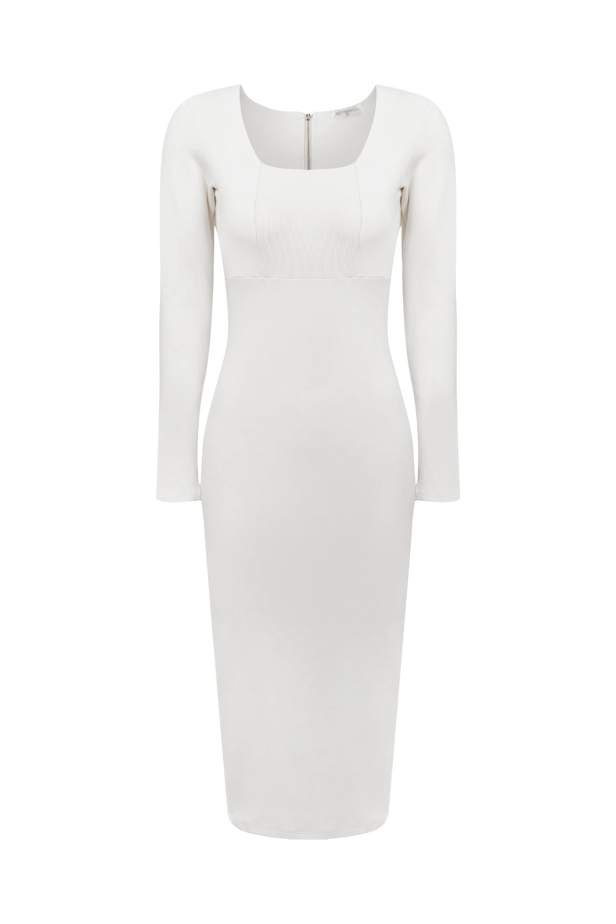 Visual elegante: decote quadrado e corte midi que valorizam a silhueta com sofisticação.