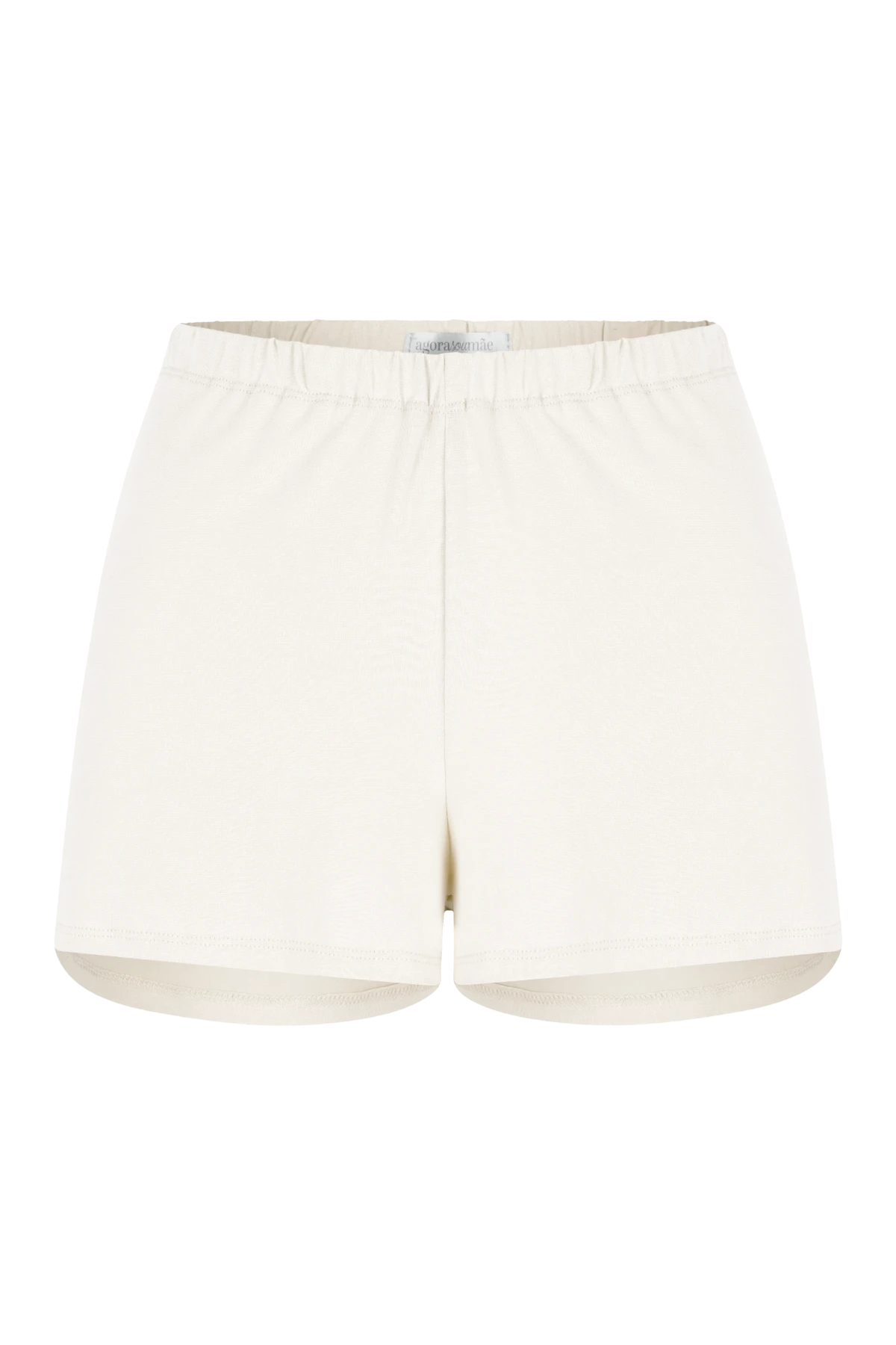 Short de modelagem soltinha com cós regulável: elástico frontal com casa para botão interno (ajuste conforme a barriga cresce ou no pós-parto) e elástico traseiro fixo para encaixe confortável.