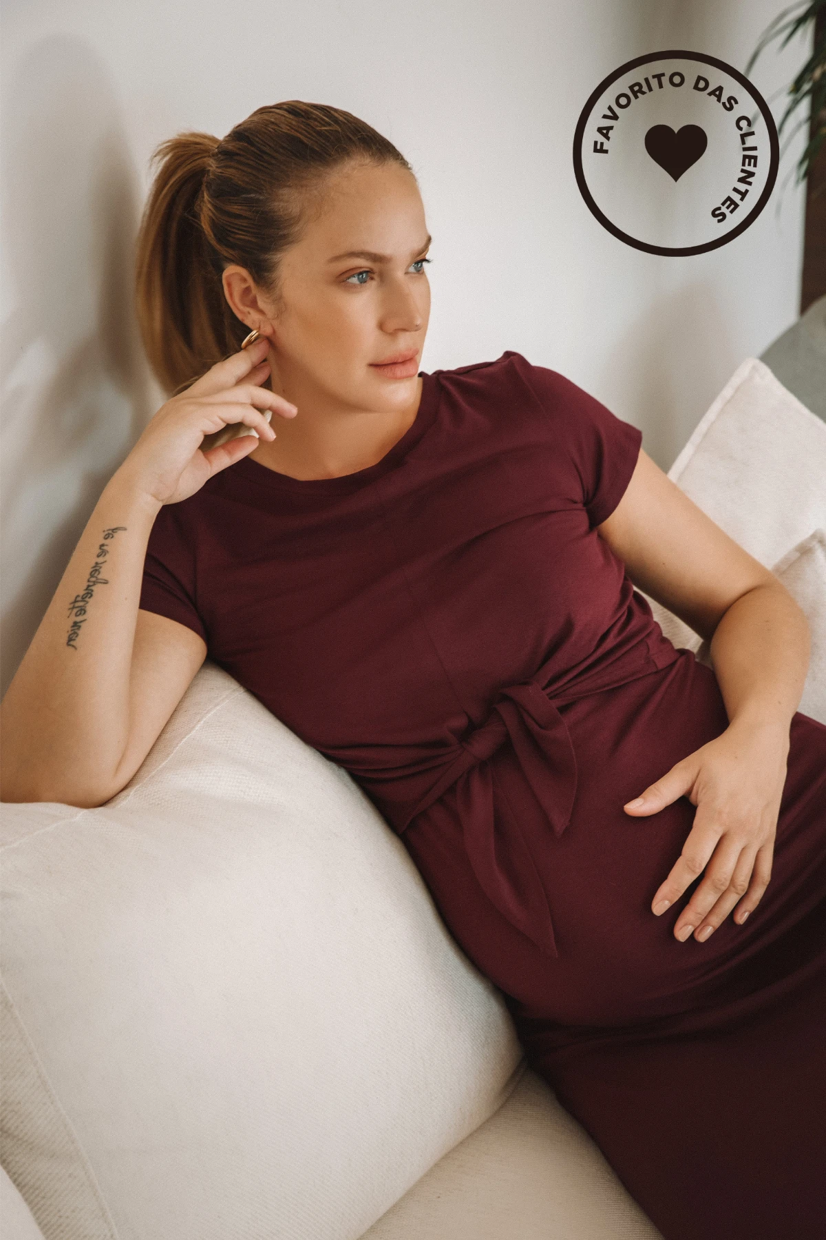Conforto térmico e caimento leve: ideal para usar na gravidez, no pós-parto e em ocasiões mais arrumadas.