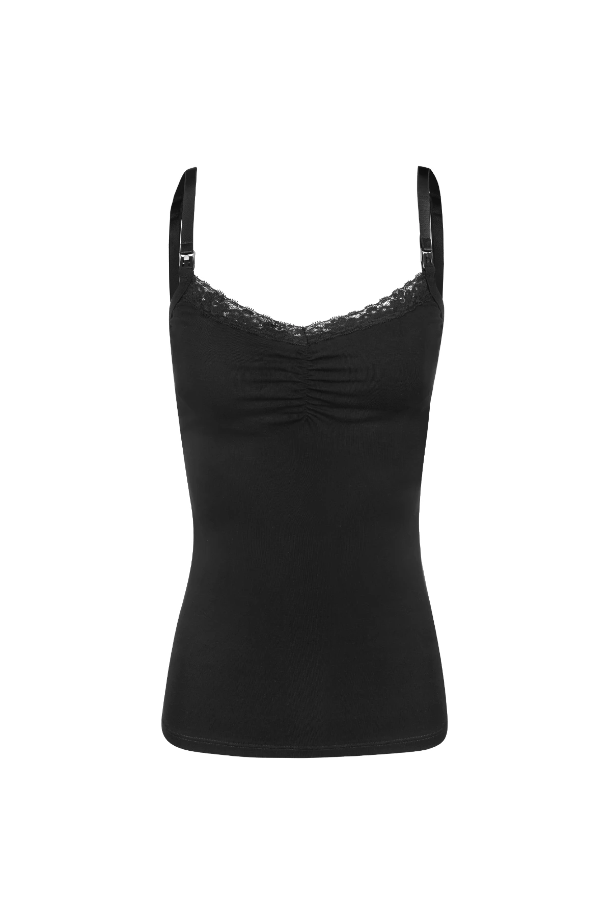 O busto duplo com elástico interno proporciona dupla sustentação, permitindo o uso com ou sem sutiã. Já as alças destacáveis com fecho click facilitam o momento da amamentação, tornando-o prático e discreto. O regulador de altura garante o ajuste perfeito ao corpo, acompanhando as mudanças da maternidade com conforto.
