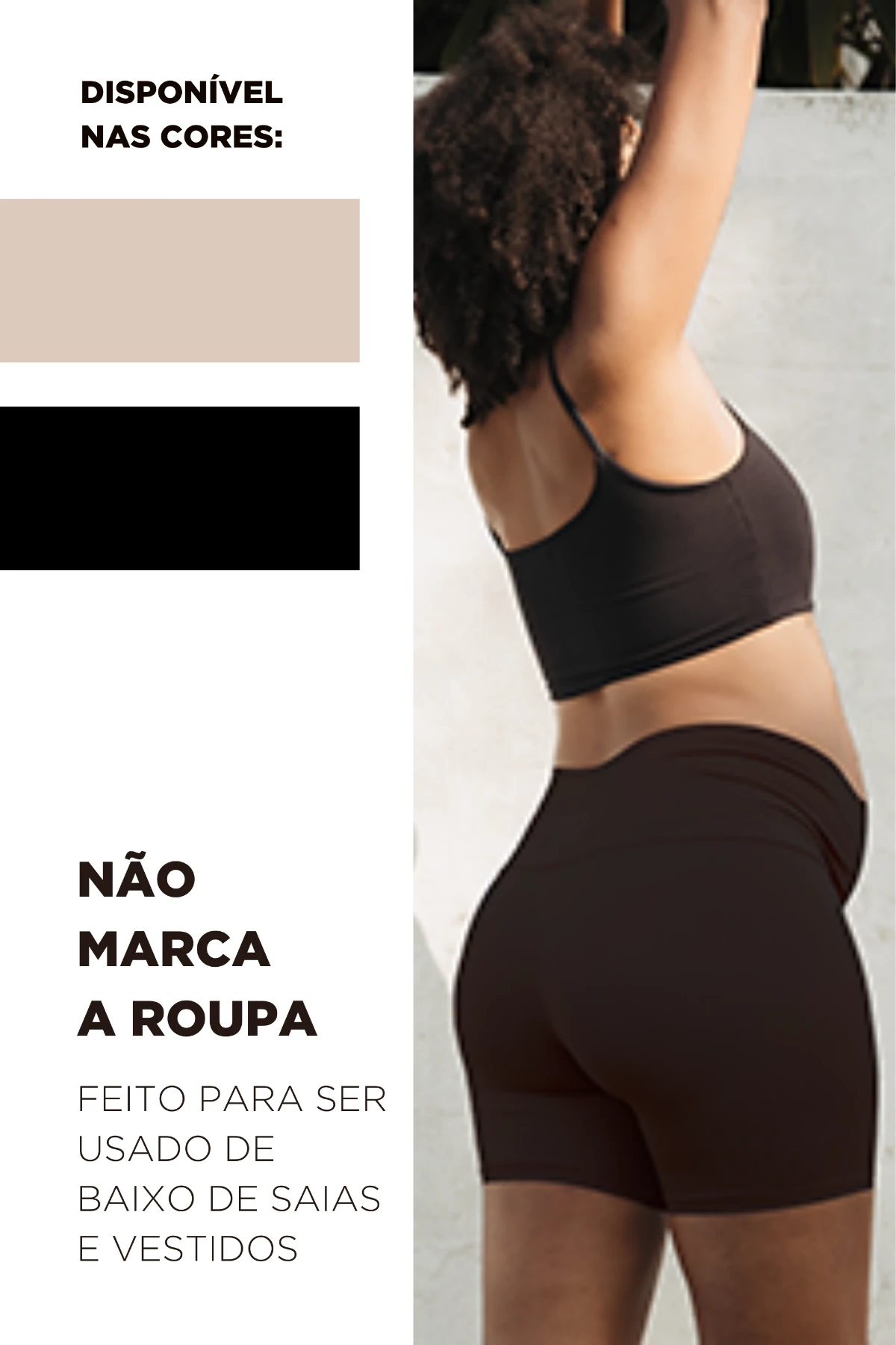Acabamento: Não marca a roupa — invisível sob saias e vestidos.